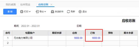 最后再来查询应收总账,此时已收就只有9000了,预收是零也就退回了