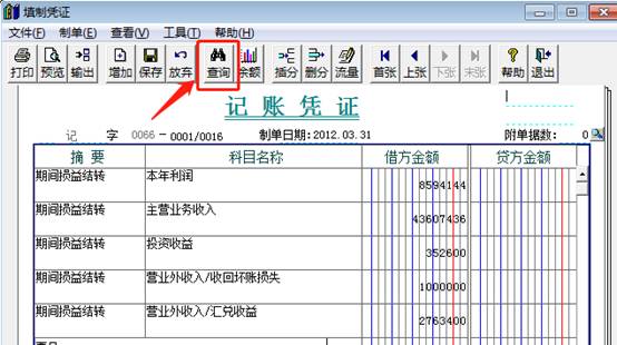 2、点击查询按钮,输入要查询的月份与凭证号,并确认,如图下: