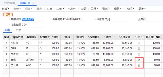 | 用友畅捷通T+标准版采购订单如何设置行中止 |