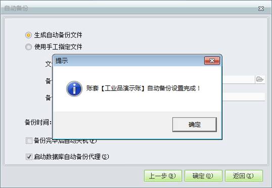 5、选择“生成自动备份文件”,设置好“备份时间”,备份时间最好设置在空闲时间,同时服务器一定是开机状态,最好点击确定,自动备份就设置成功了,如图下操作: