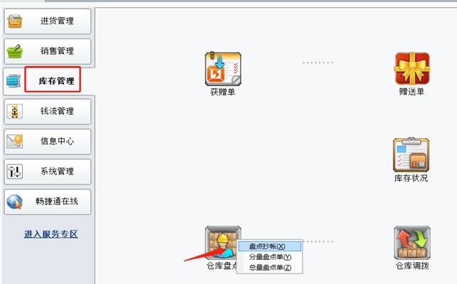 查看详情 +问:畅捷通T1商贸宝如何进行盘点业务操作? 答:1、进入畅捷通T1商贸宝系统后,首先进行盘点抄账,点击“库存管理”-“仓库盘点”-“盘点抄账”,选中全部仓库并点击确定抄账完成,如图下: 1、进入T1系统后