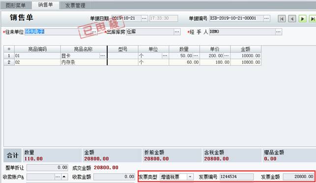 查看详情 +前言:发票是在经营过程中必不可少的票据证明,当企业销售产品后,怎么知道哪些单开了票?哪些单没有开票呢?下面以畅捷通T1商贸宝来说明如何实现。 一、在开单时并同时开发票1、1、同时开具发票是指在录入销售单据的同时就开具