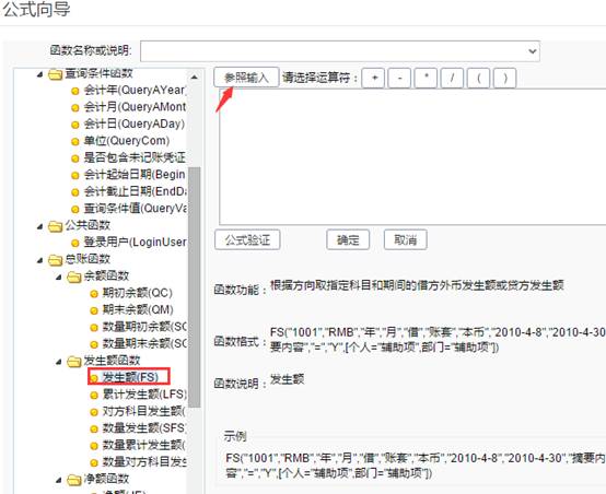 2.双击某公式单元,进入公式向导界面,点击参照输入录入取值公式,如图下: