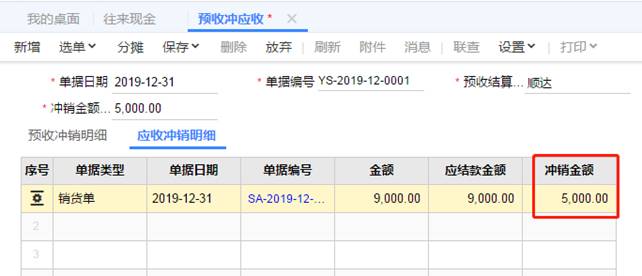 前言:用友T+标准版往来现金中提供了往来冲销功能,有五种冲销方式,预收冲应收、预付冲应付、应收冲应收、应付冲应付、应收冲应付,那么如何使用呢?下面以来“预收冲应收”来举例说明,今收到顺达公司预收款5000元,后销售产品给顺达公司收入为9000元,冲掉之前的预收5000元,应收顺达公司4000元。具体操作步骤如下,转载请注明出处,侵权必究!