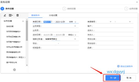 在发布条件中,可以按天、按周、按月设置,根据实际需要设置好相应条件,点击下一步,