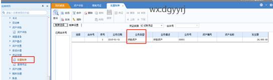 制单设置界面可以看到评估资产业务记录,选中记录点击制单设置-凭证